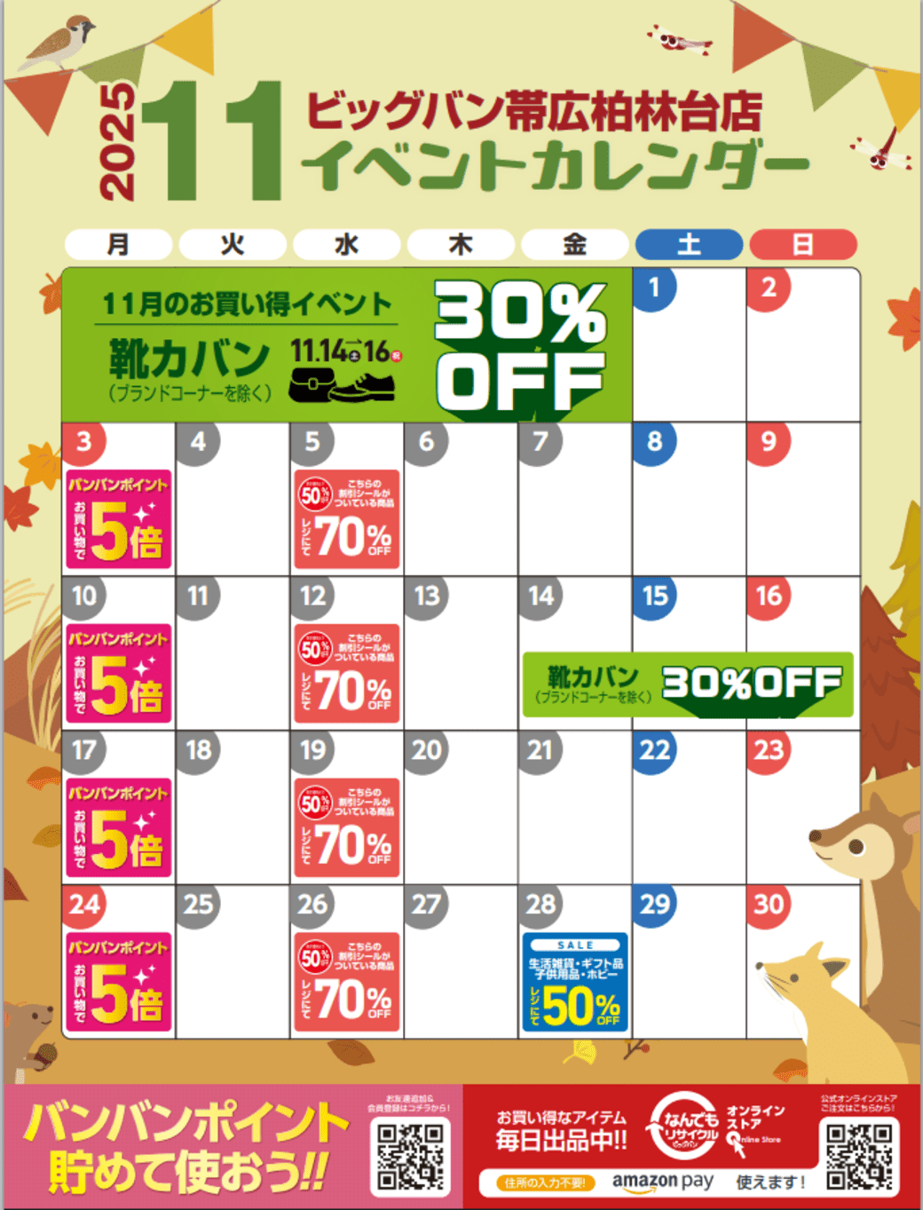 さらに、毎週月曜日は、100円お買い上げごとに1ポイント貰えるバンバンポイントが