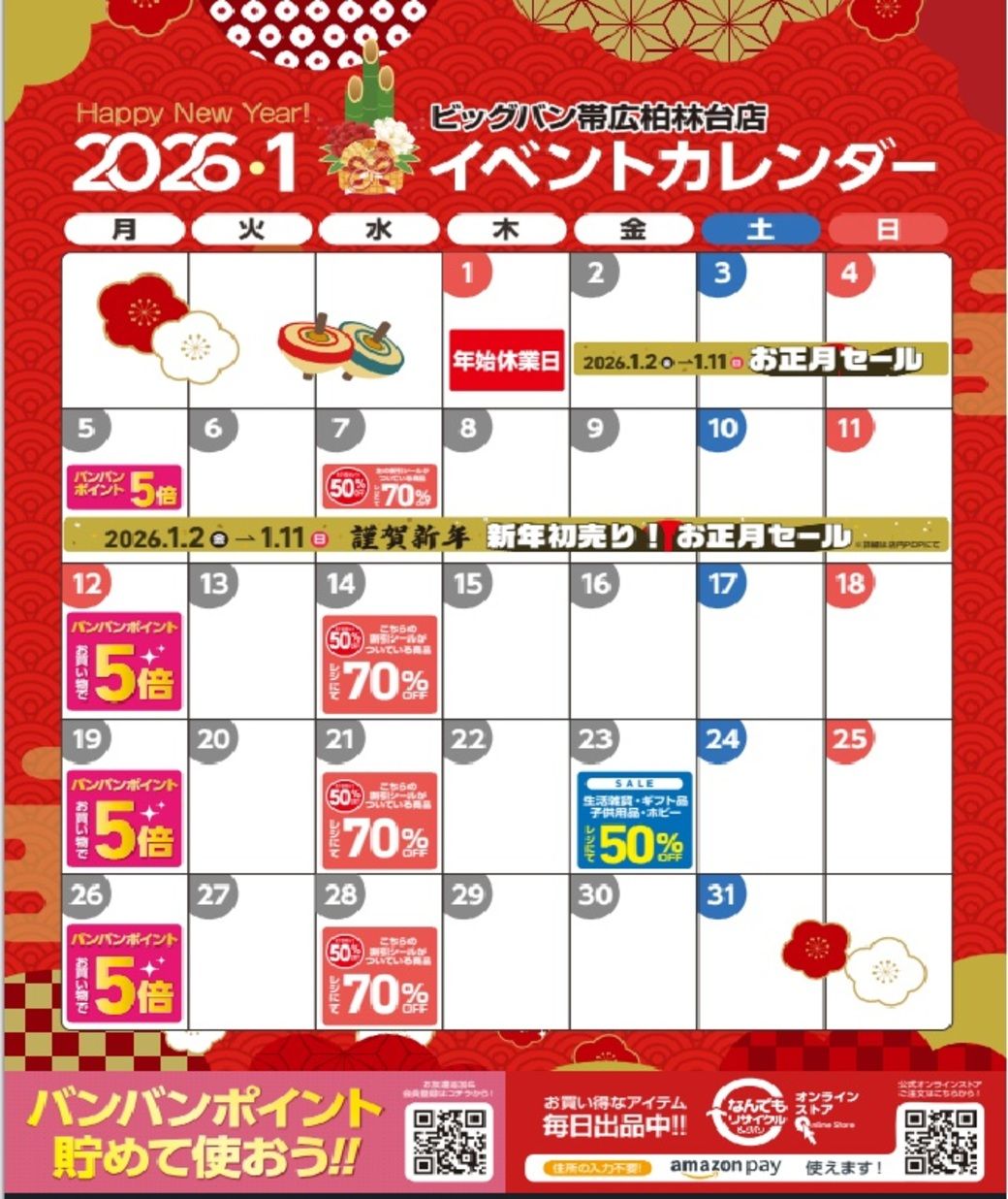 2026年1月イベントカレンダーです!