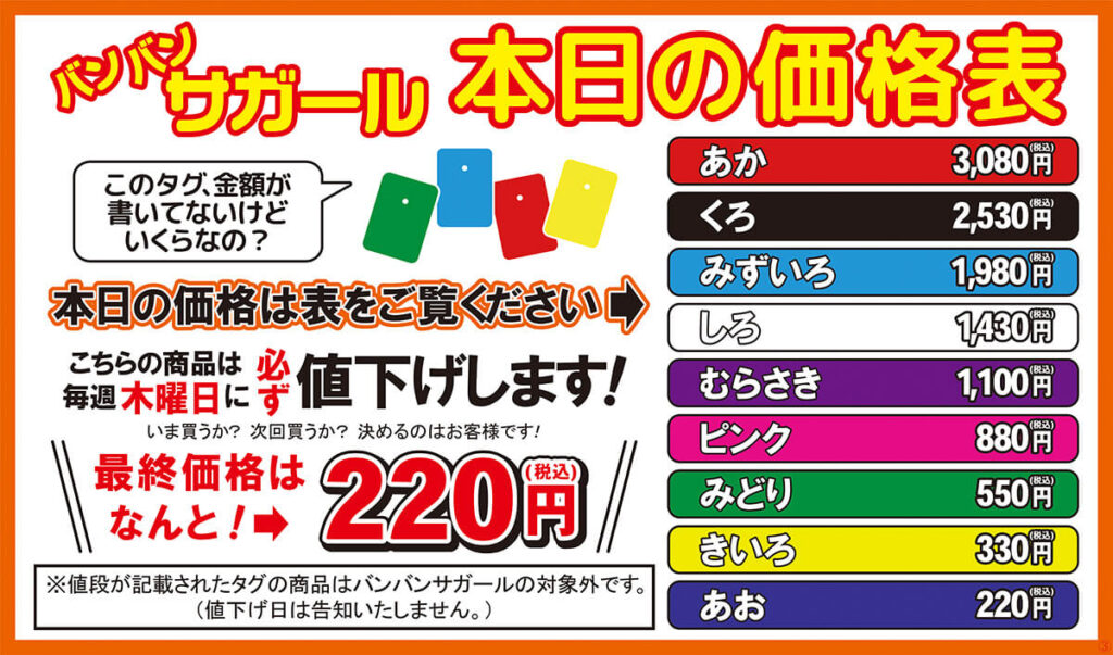 こんにちは!毎週木曜日はバンバンサガール価格改訂日です!