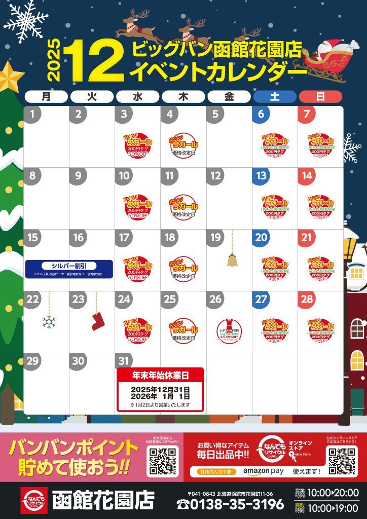 2025年12月のお得なSALE情報が載っているカレンダーとなります。