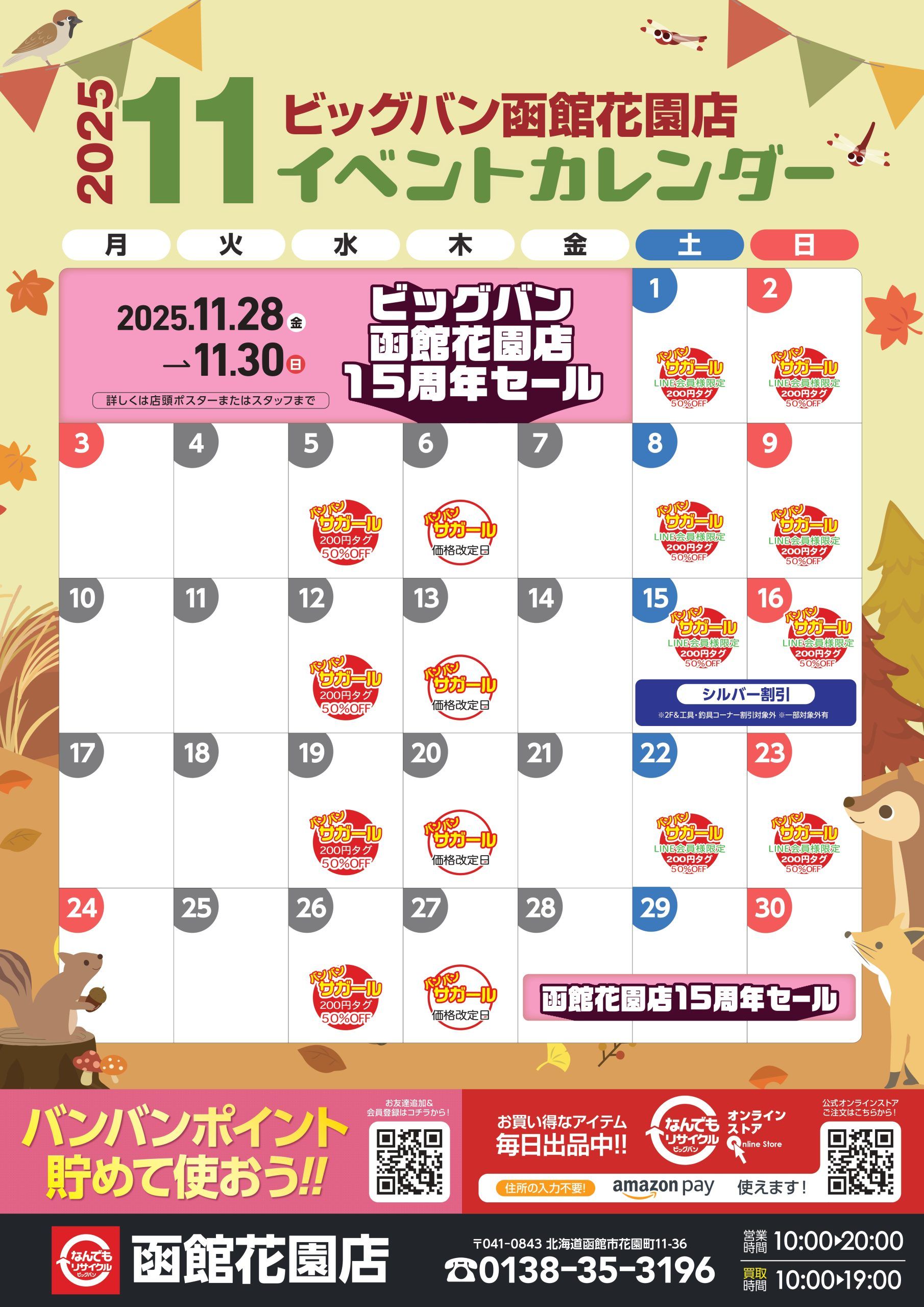 2025年12月のお得なSALE情報が載っているカレンダーとなります。