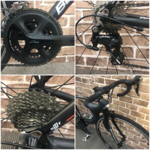105(5800)仕様です、11-28の11s、フレームに目立ったキズが少ない一台です、フロントのSTIレバー、アウターとインナーの切り替え時に少し難有ですが状態は店頭でお確かめください。チェーンに少し錆が出始めている状態です、ペダルはフラットペダル、サイズは48