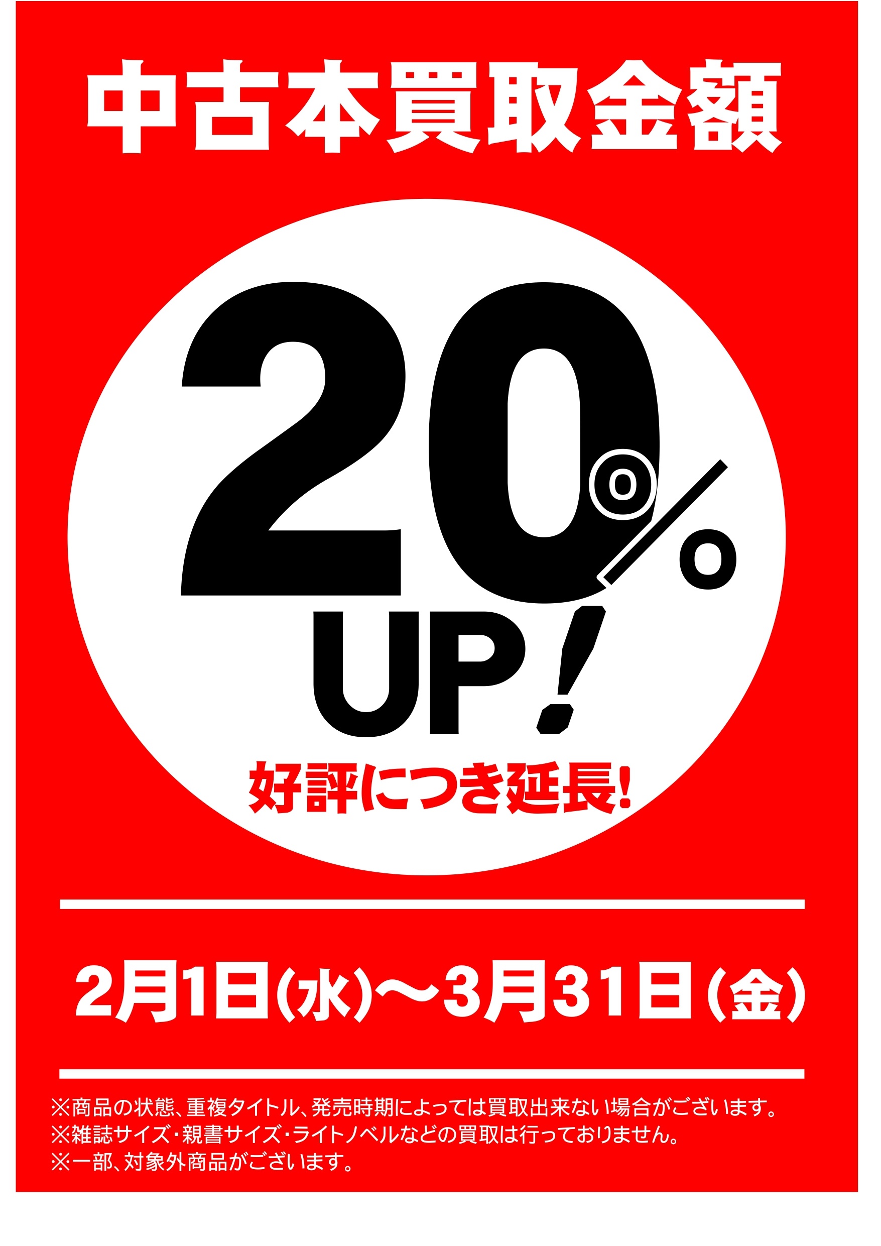 中古本全品、通常買取金額から20%アップで買取させて頂きます!
