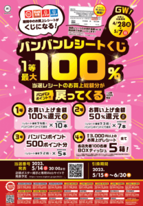 また、2023/4/28~5/7の間に発行されたレシートがくじになる「バンバンレシートくじ」も好評開催中。