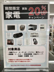 家電品の買取金額20%UPのキャンペーンを実施しています。
