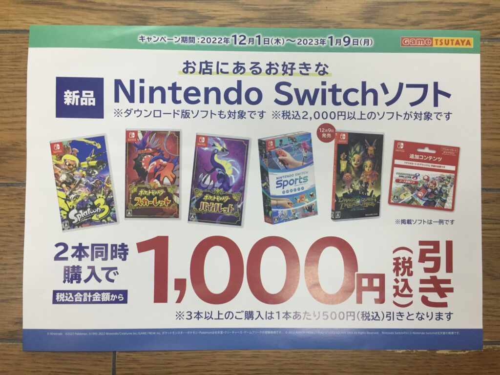 新品Nintendo Swiitchソフト 2本同時購入で 1000円引き!!