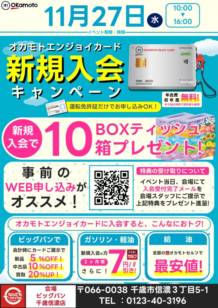 などなど特典がたくさんのオカモトエンジョイカード新規入会イベントを27日限定で実施いたします!