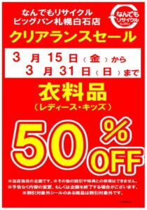 ビッグバン白石店では、2024年3月15日~31日までの期間中