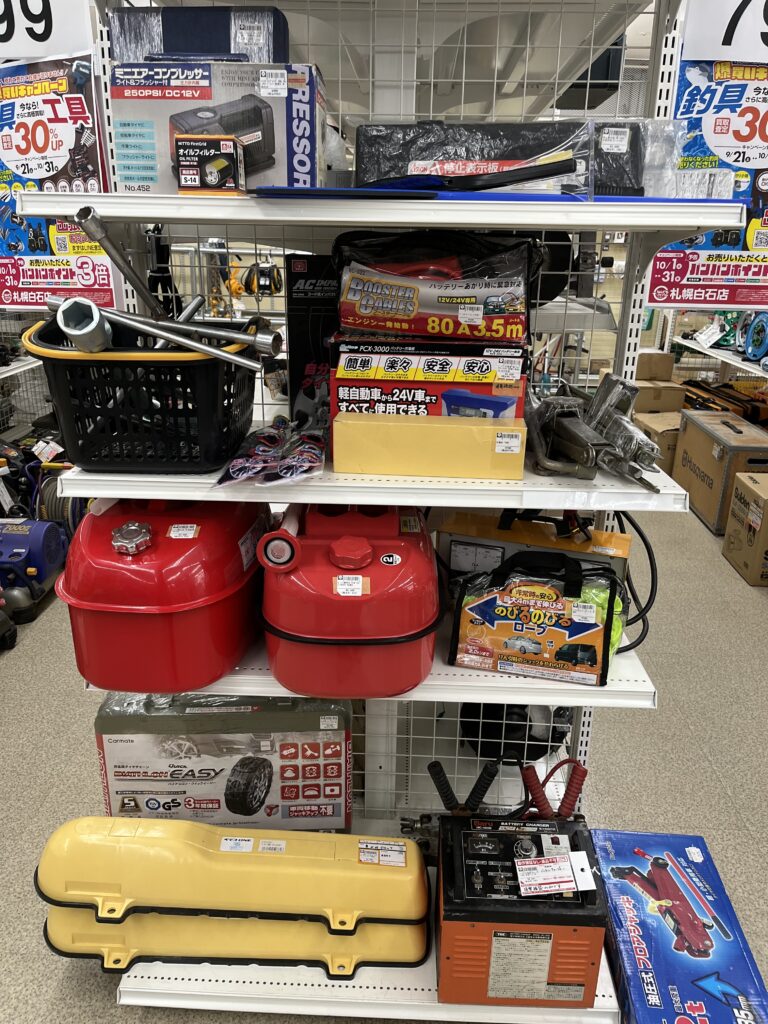 車の冬支度に、ジャッキ、ブースターケーブル、けん引ロープなど必需品が揃ってます。