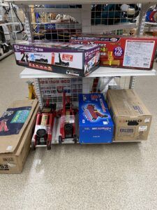 工具館では、タイヤ交換に役立つフロアジャッキや十字レンチ、インパクトレンチ、