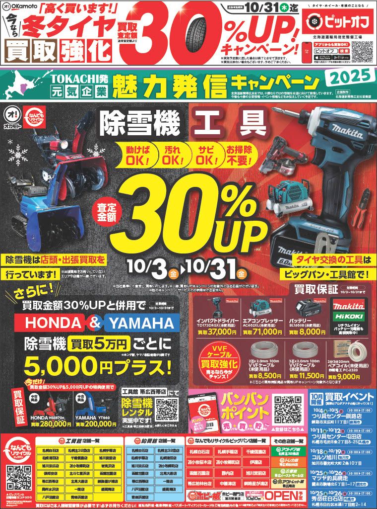 10月4日〜10月31日まで工具買取30%upを開催しております