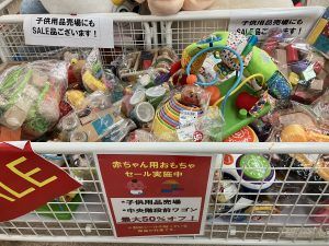 ただ今子供用品売場(一部1階正面階段前ワゴン)では、赤ちゃんおもちゃセールを12月22日まで行っております!!!!!