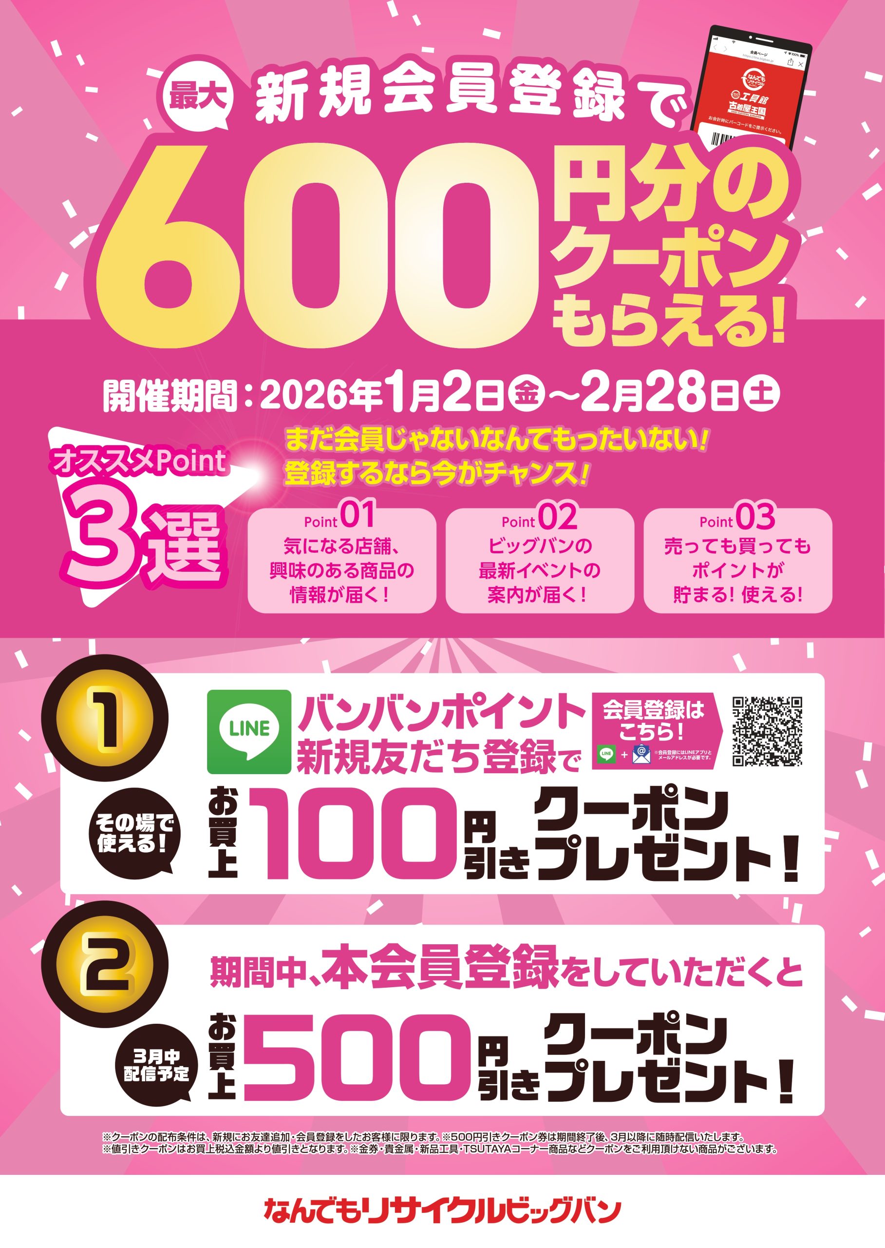 バンバンポイント会員 新規登録キャンペーンのご案内です。