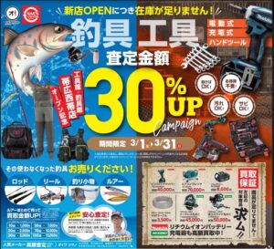 工具、釣具買取30%UPキャンペーン実施中!!!!!!