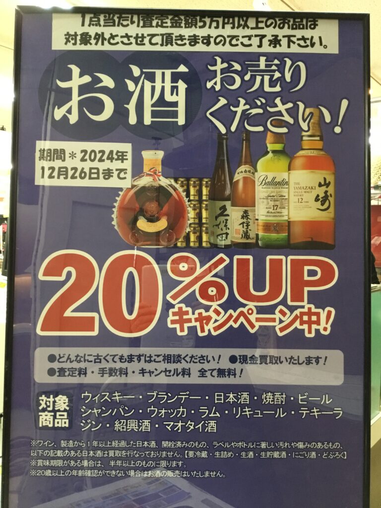 お酒の買取UPキャンペーンは12月26日までとなっております!!!