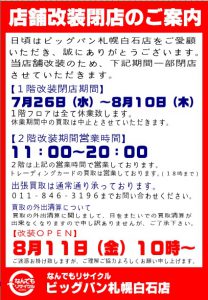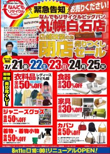 なんでもリサイクルビッグバン札幌白石店からお知らせです!