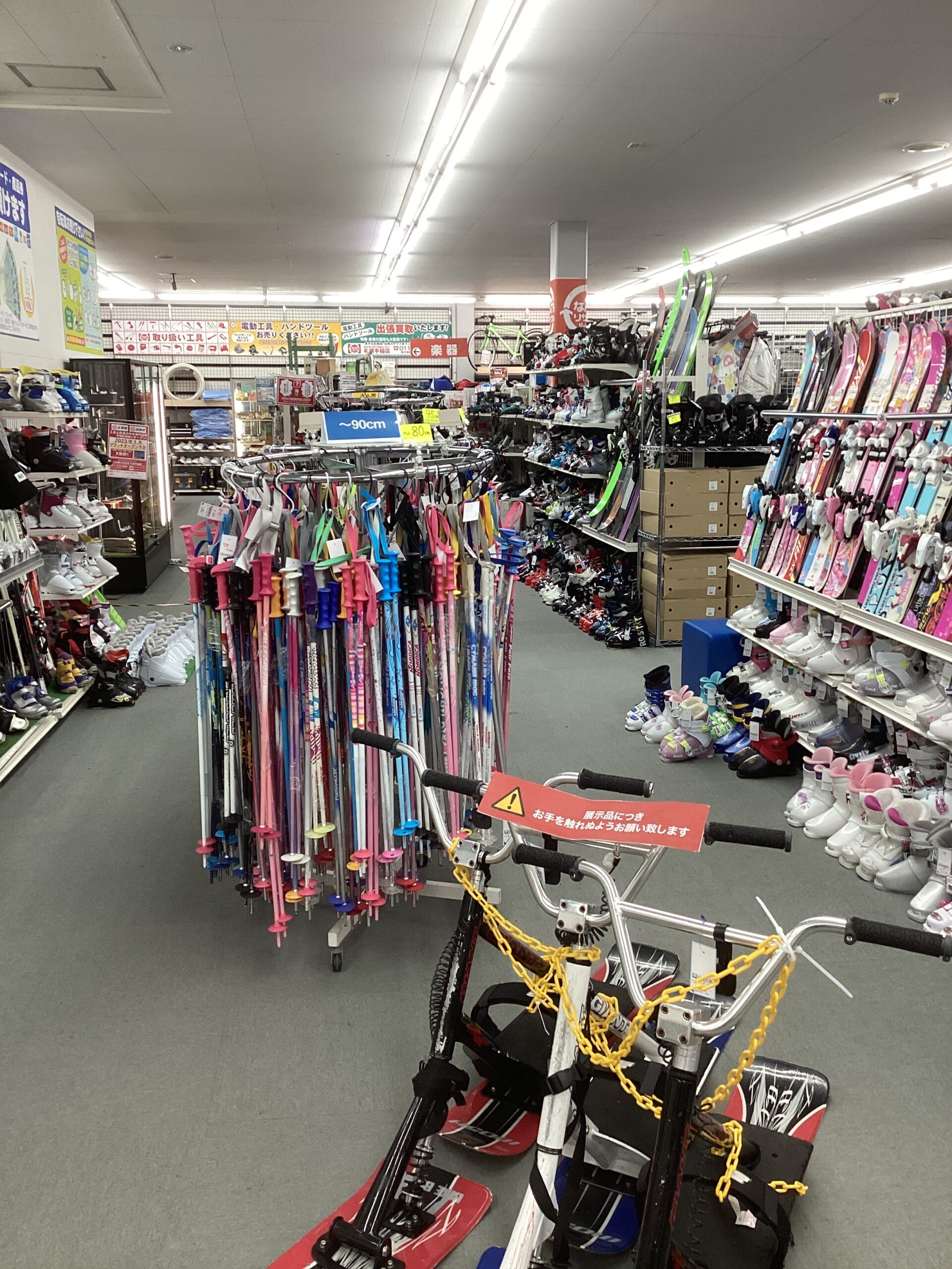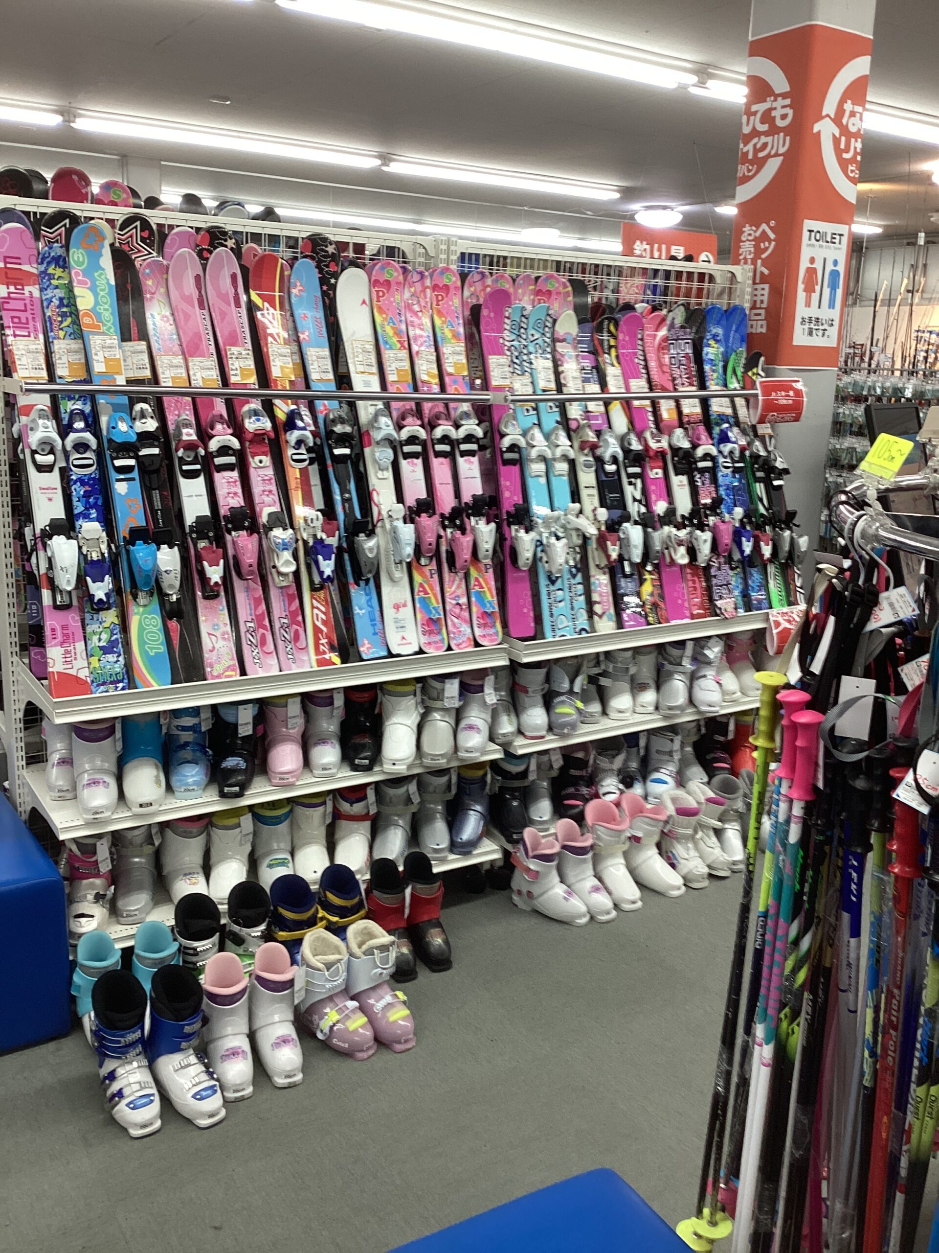 スキー板、スノーボード、ブーツ、ストック、スキーウェアなどサイズや種類も豊富に取り揃えております(๑>◡<๑)