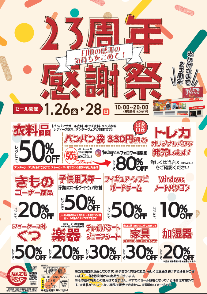 ビッグバン札幌手稲店 オープン23周年感謝祭!