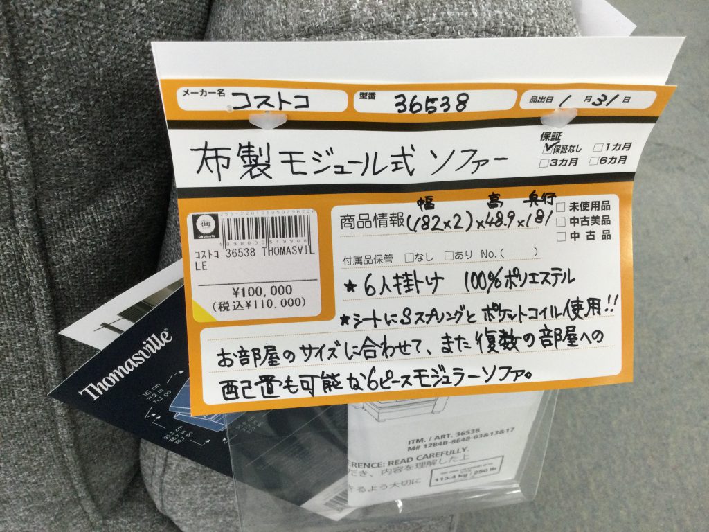 今回セールは終了しましたがコストコさんの大型ソファーの入荷しましたので