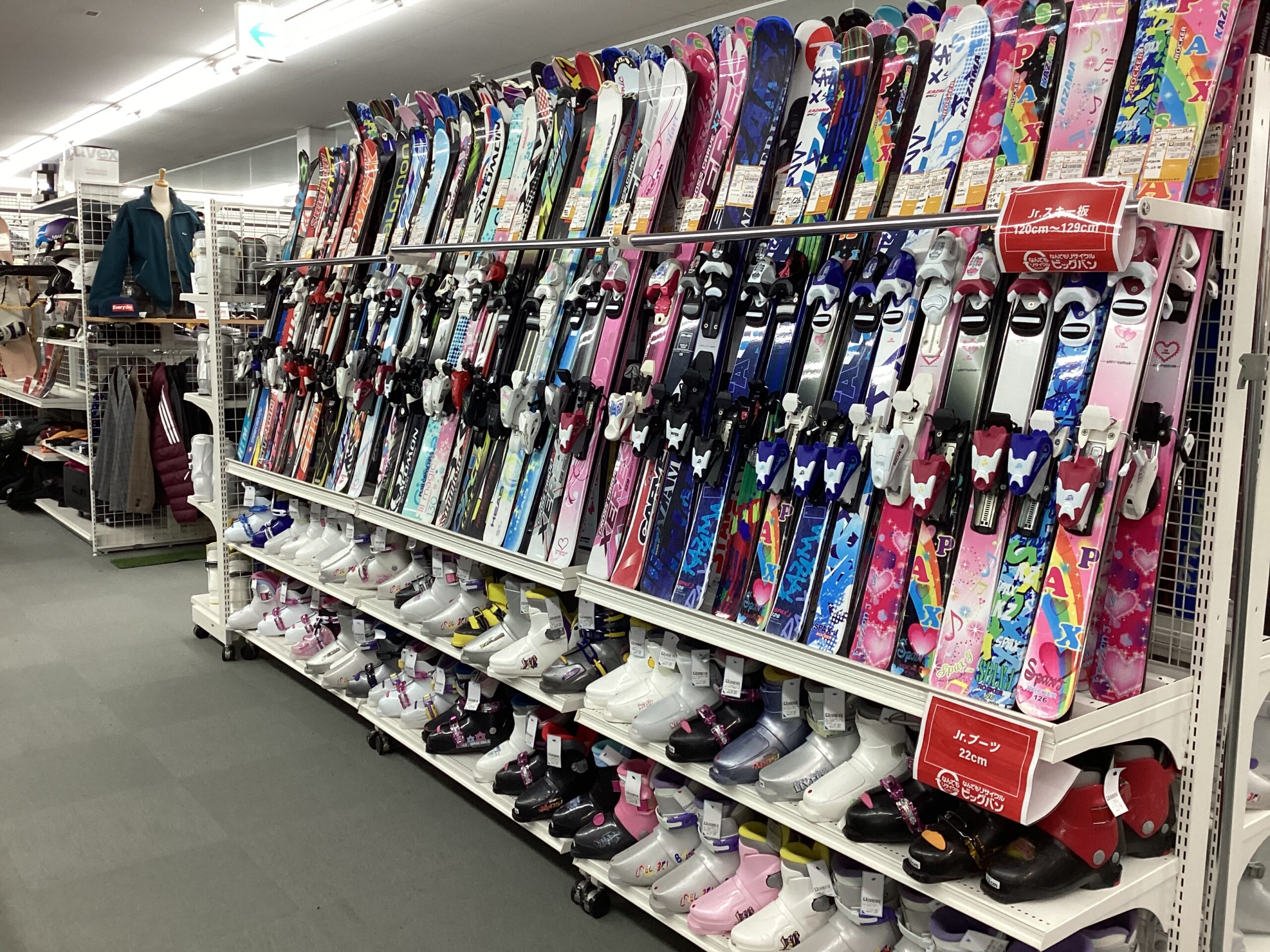 当店ではジュニア用スキー板やブーツ、大人用スキー板やブーツも豊富に取り揃えています!!