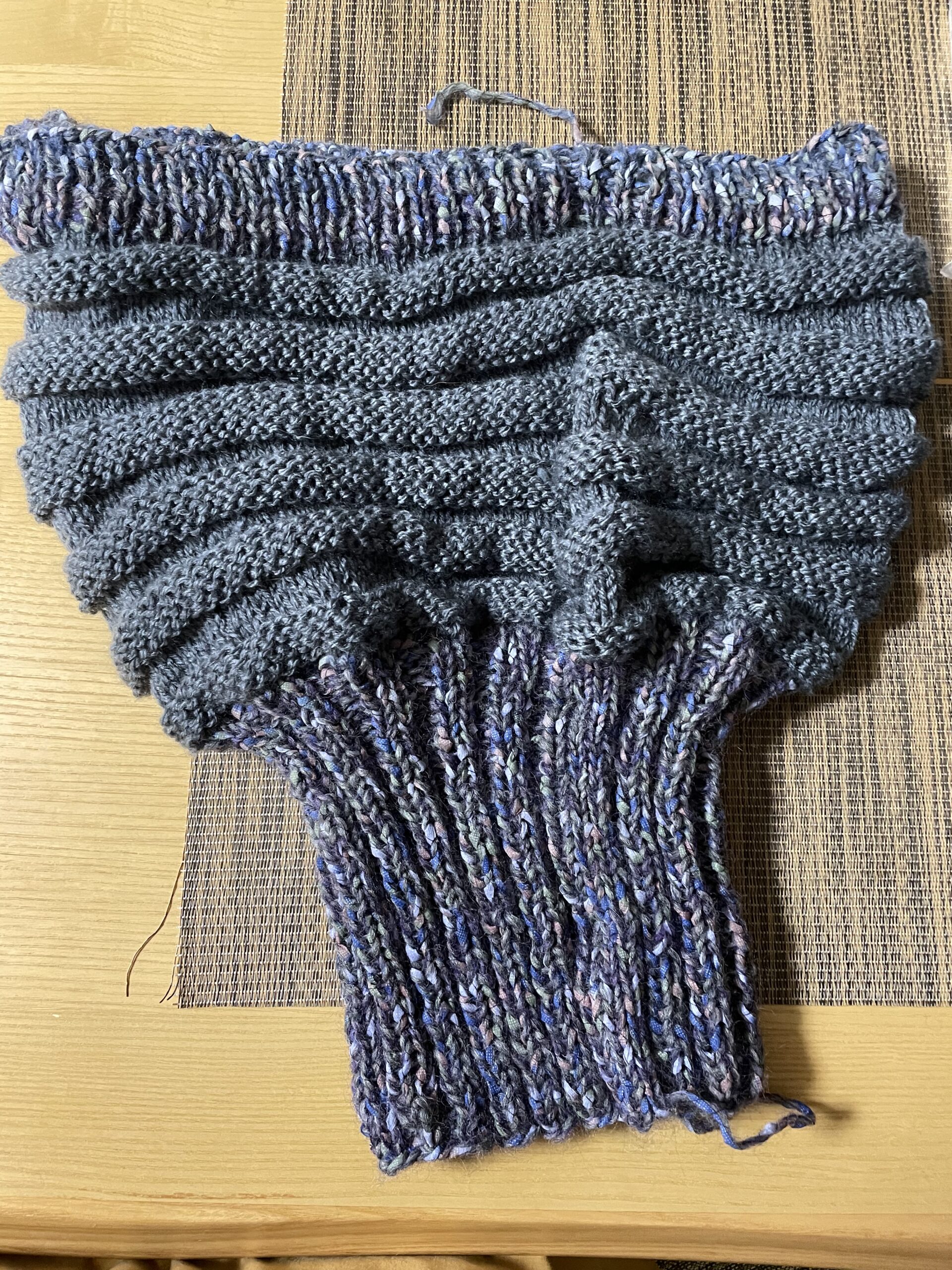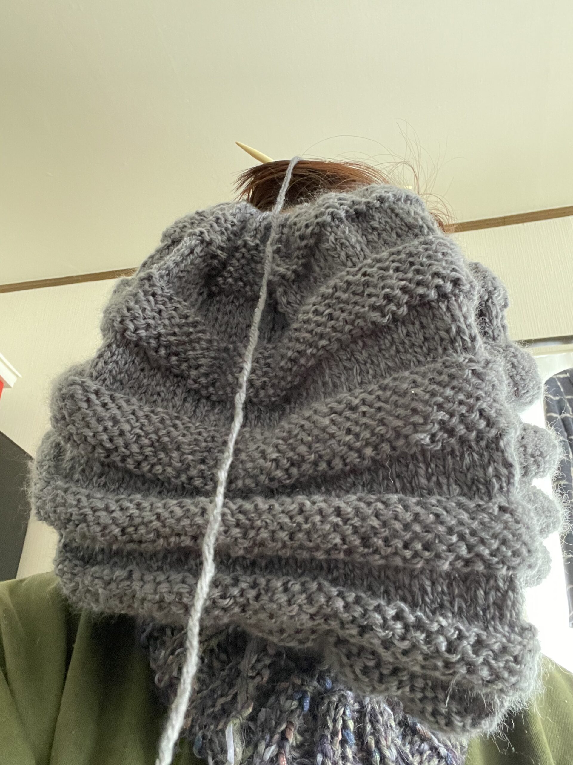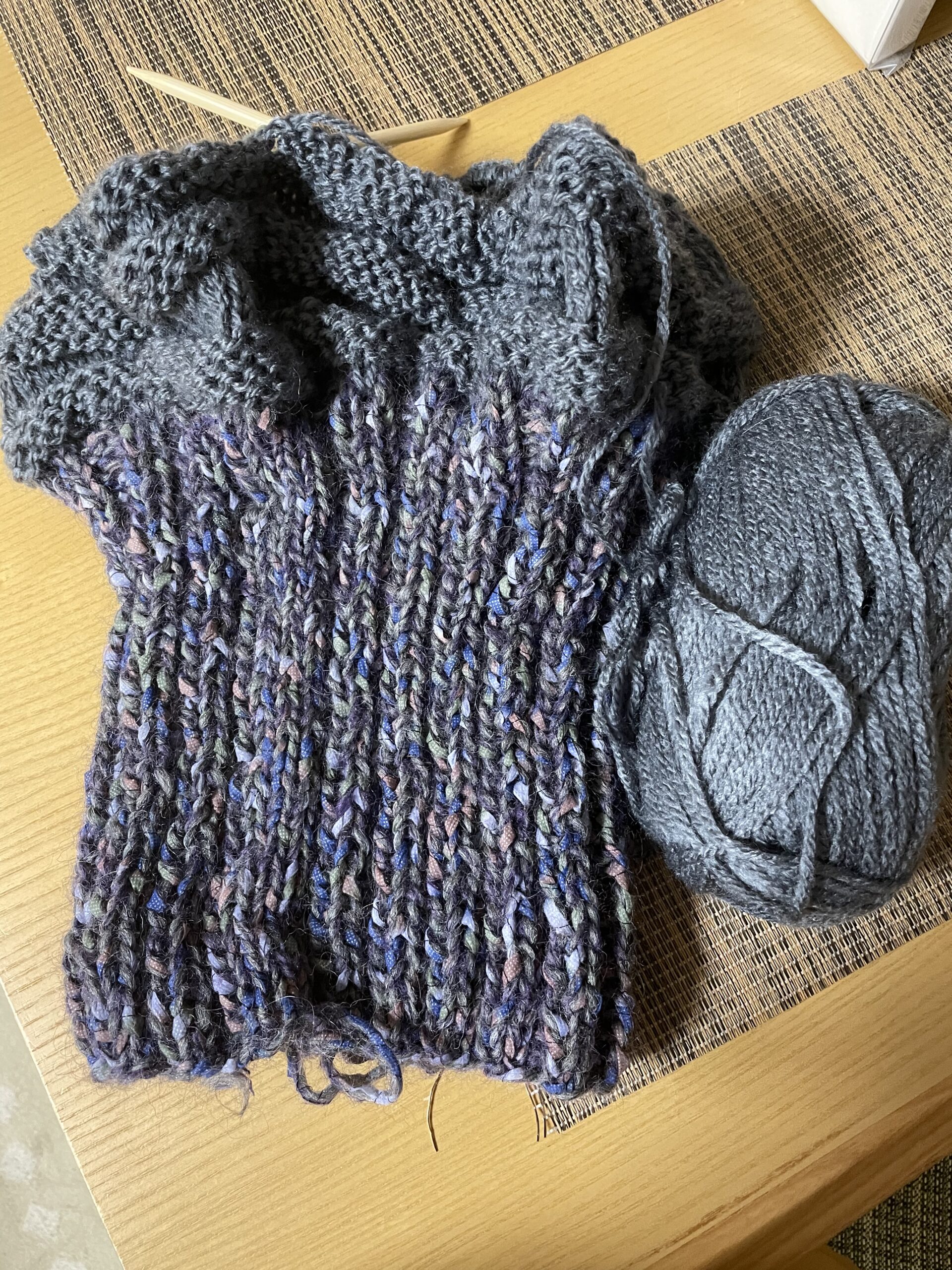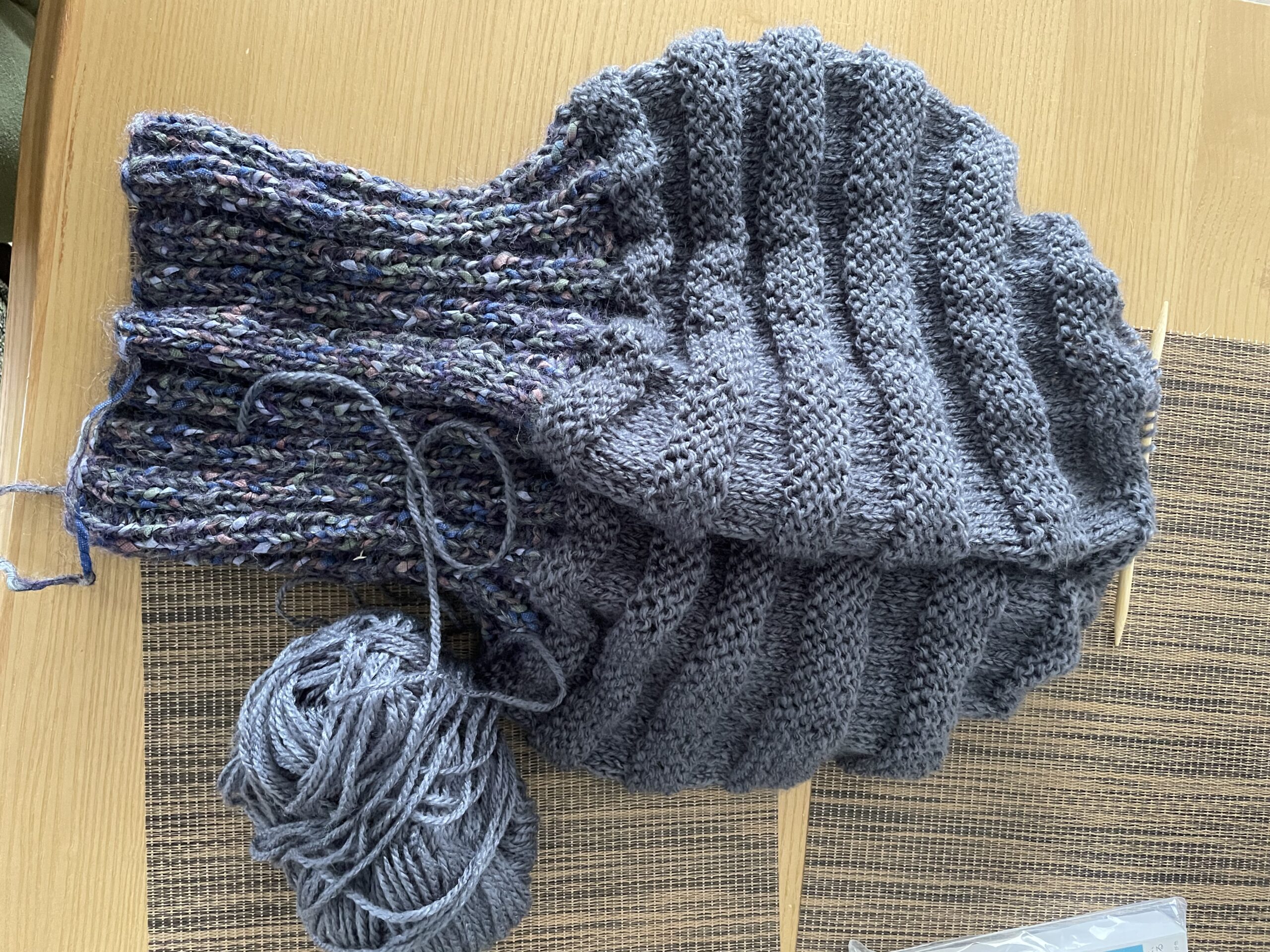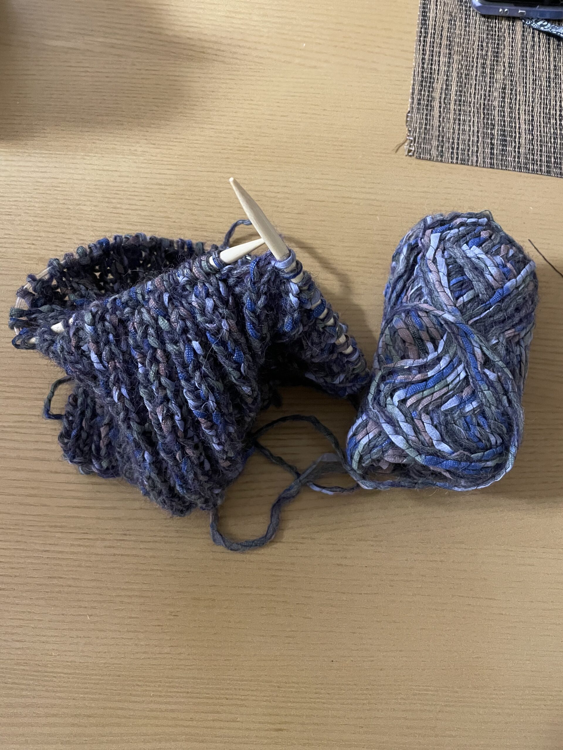 手稲店雑貨コーナーで購入した毛糸とストック毛糸を60センチ輪針で編みました( ͡° ͜ʖ ͡°)