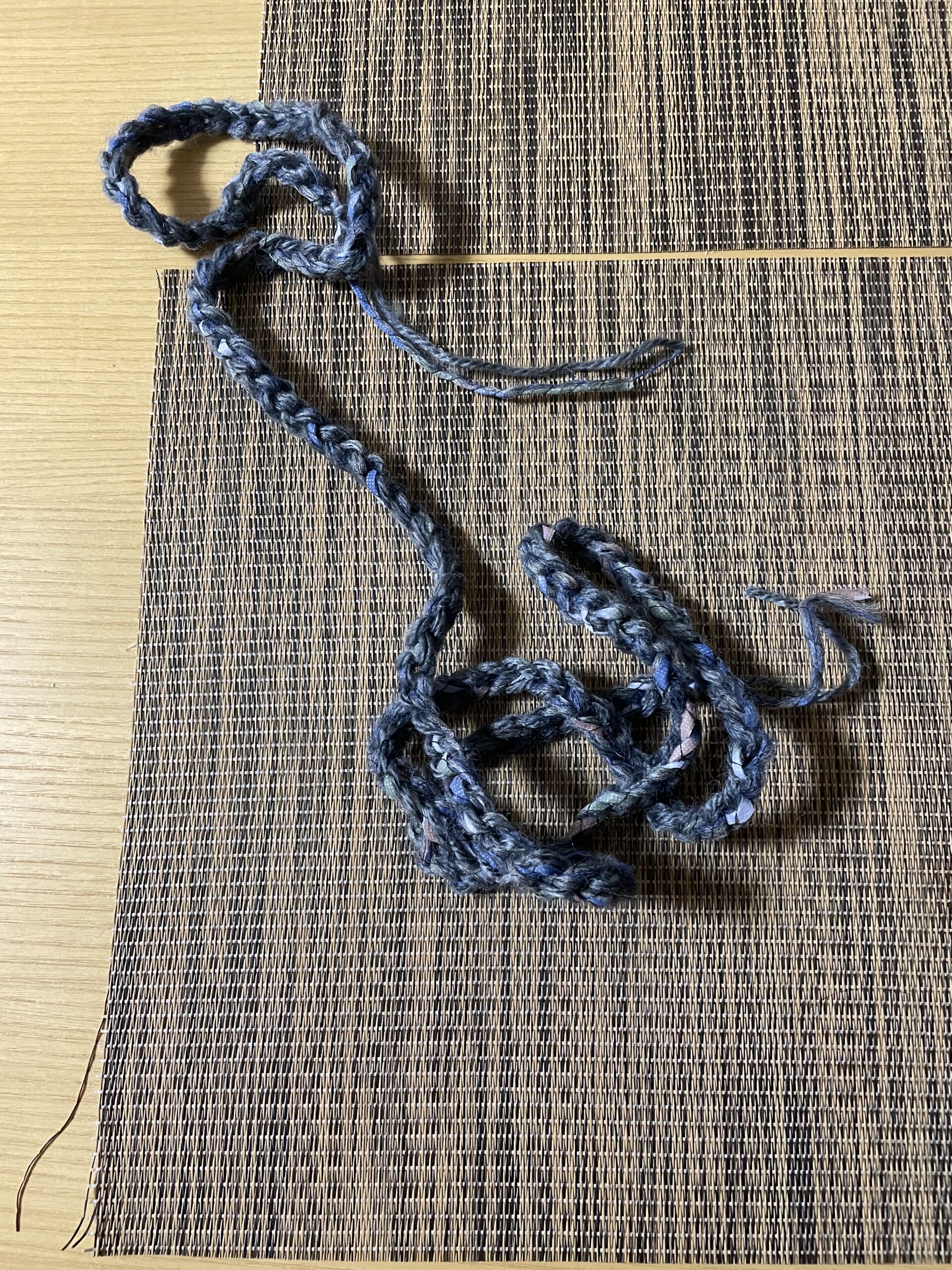 2本取りの鎖編みをフードの直径に合わせて作ったら、纏りながら中に入れて出来上がりです‼️