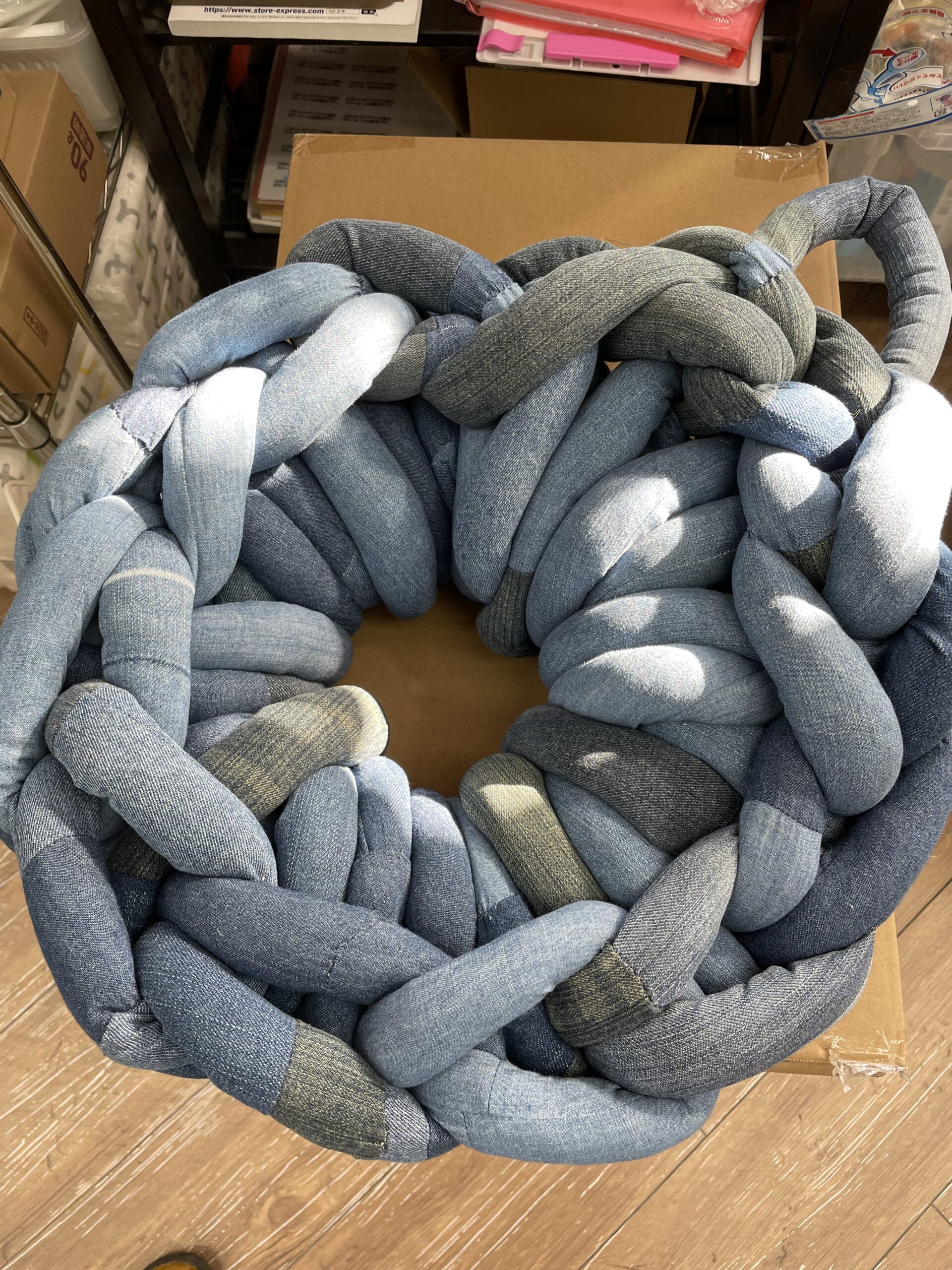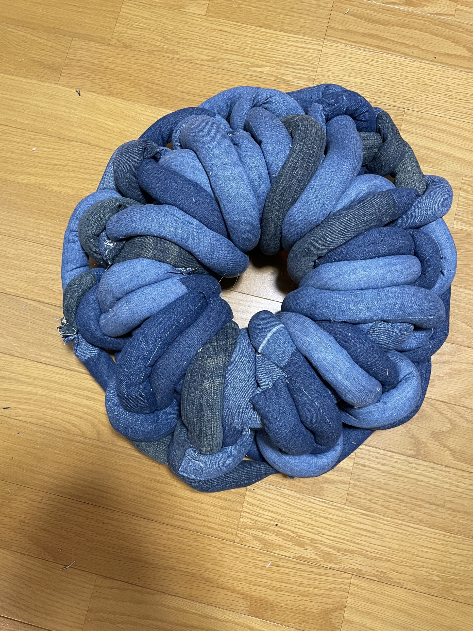 チャンキーヤーンのドーナツクッションです(^∇^)