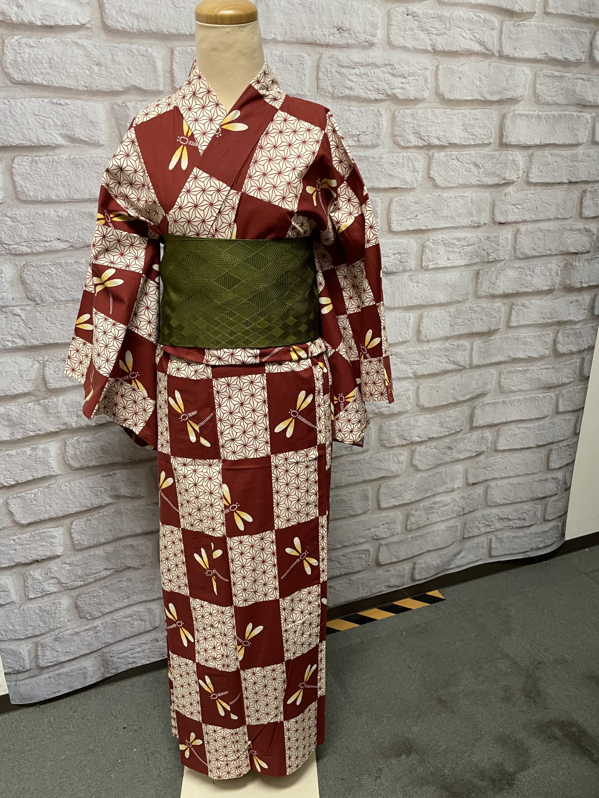 1番は赤茶と白の市松に麻の葉やトンボ柄の浴衣に