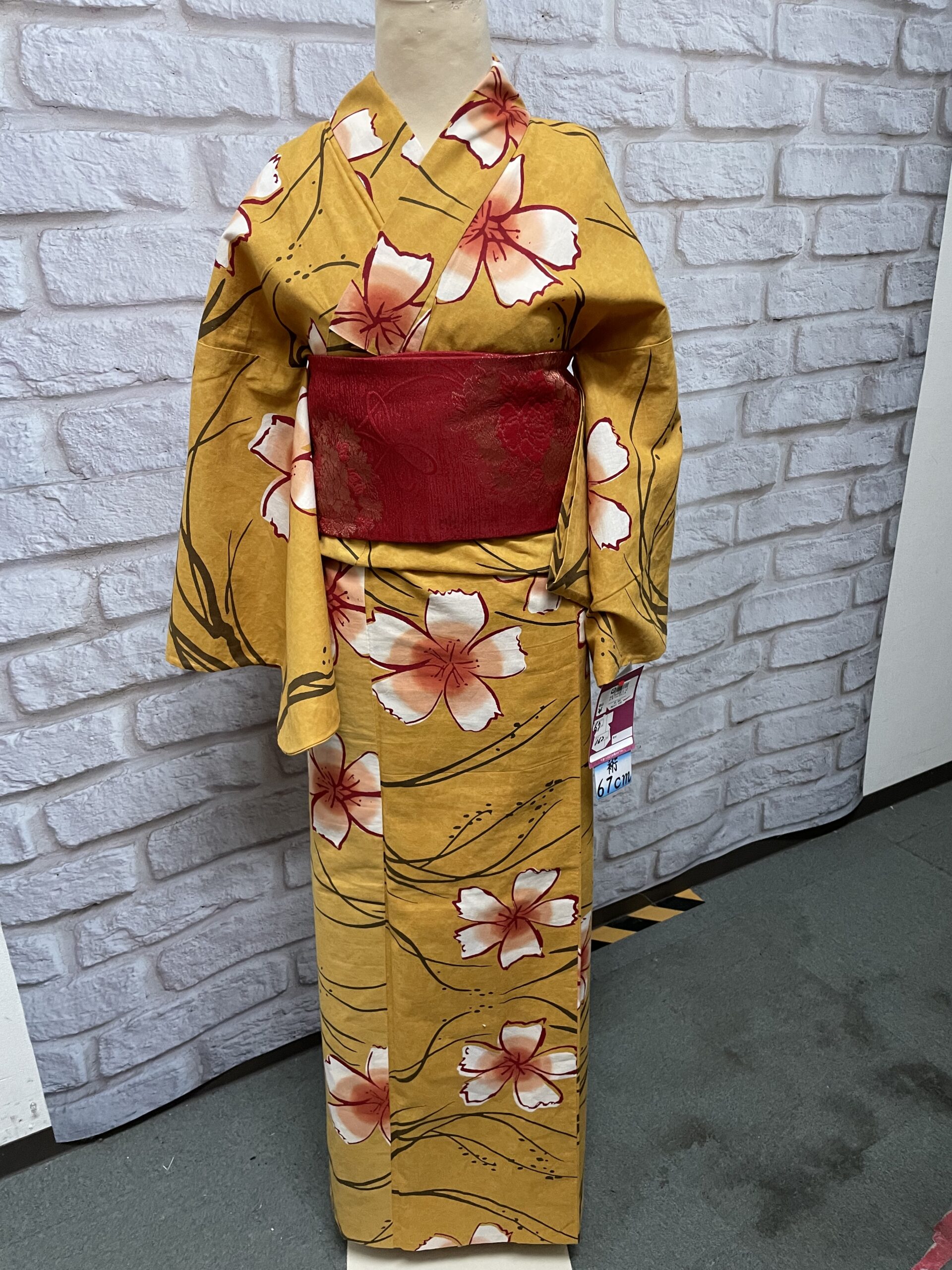 3番は辛子色に大きめの桜っぽい花が大人可愛い浴衣に、