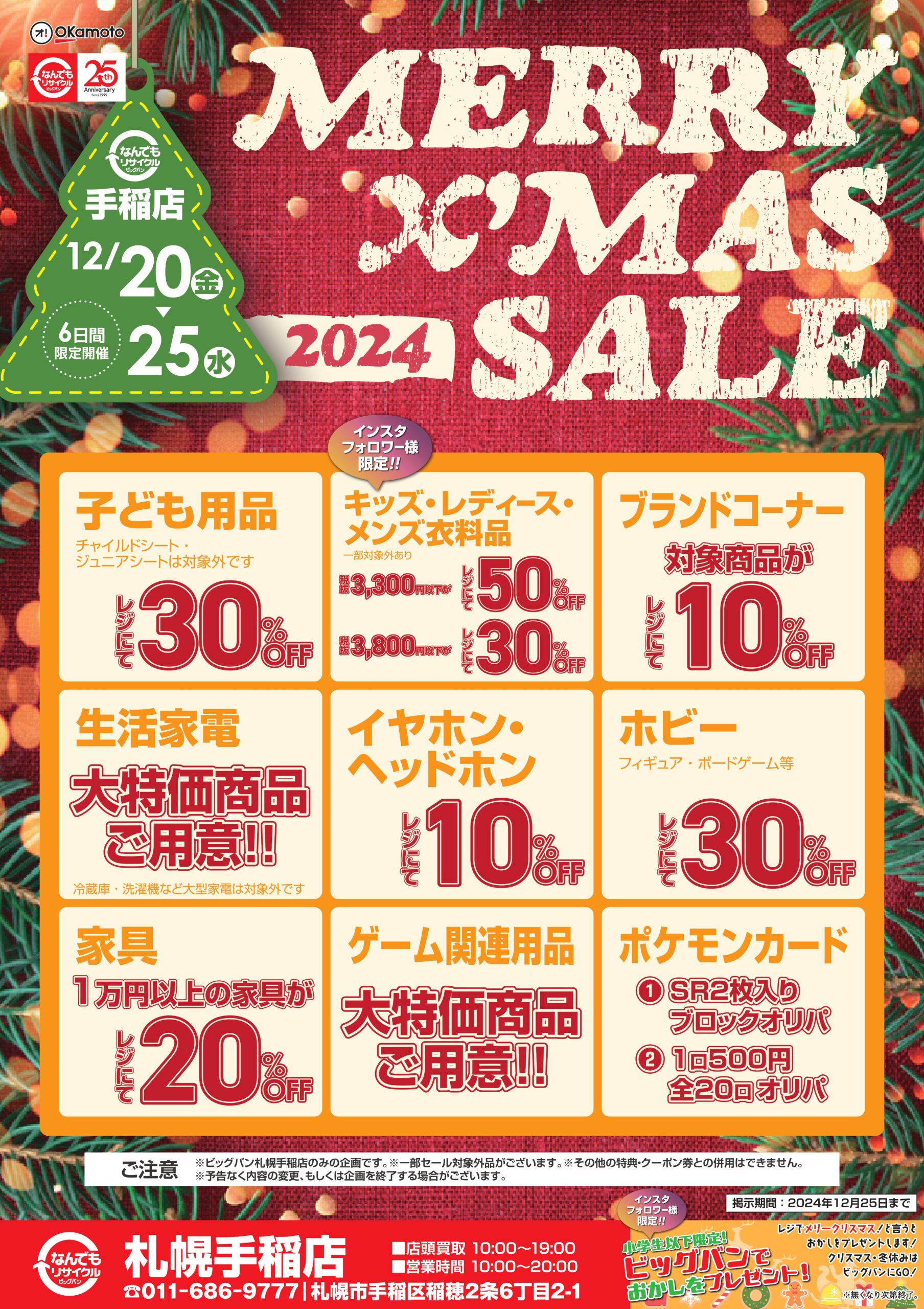 #ビッグバン札幌手稲店#手稲区#札幌市#sdgs#リサイクル#リサイクルショップ#リユース#リユースショップ#クリスマス#クリスマスセール#ファッション#家電#家具#ブランド#ポケカ
