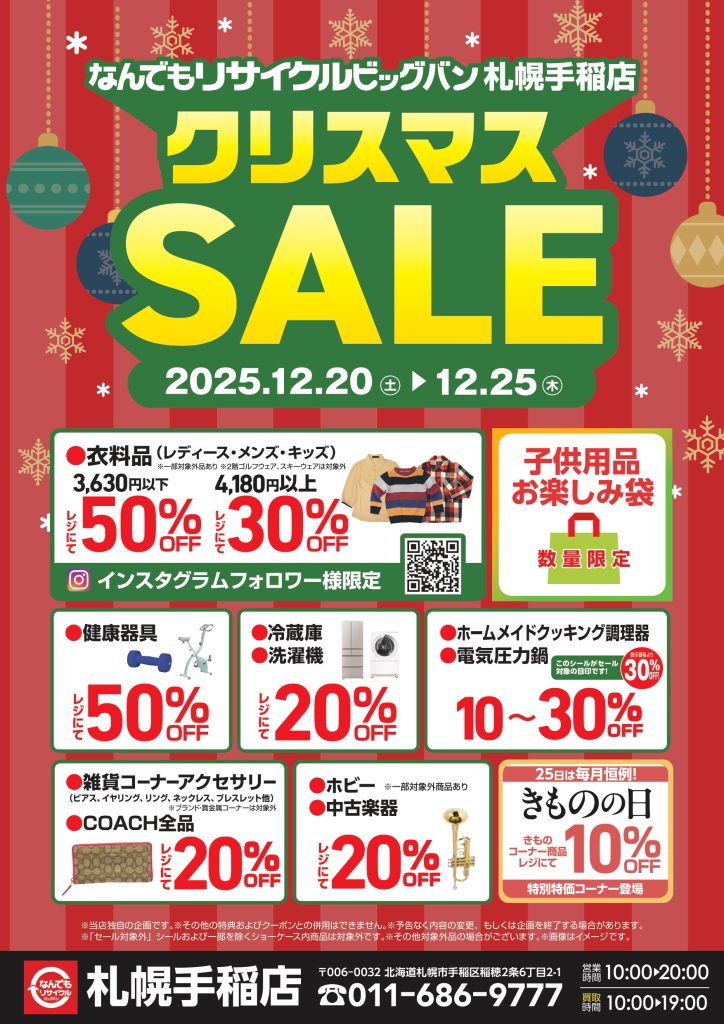【12/20-25】ビッグバン札幌手稲店クリスマスセール!!