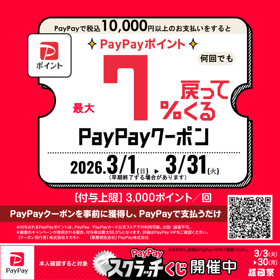 2026年3月3日(火)~3月30日(月)まではPayPayスクラッチくじも開催中!
