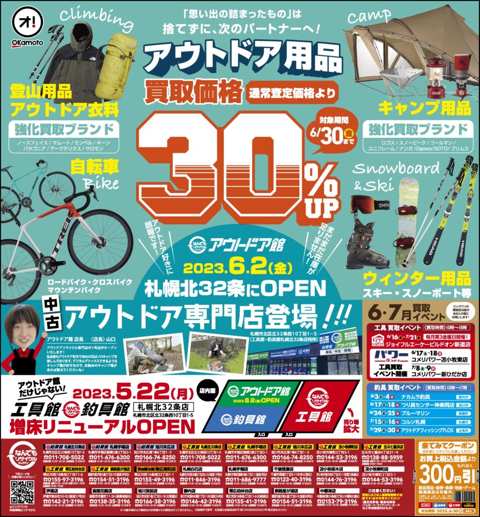 アウトドア用品の買取価格30%アップキャンペーンを行なっております!