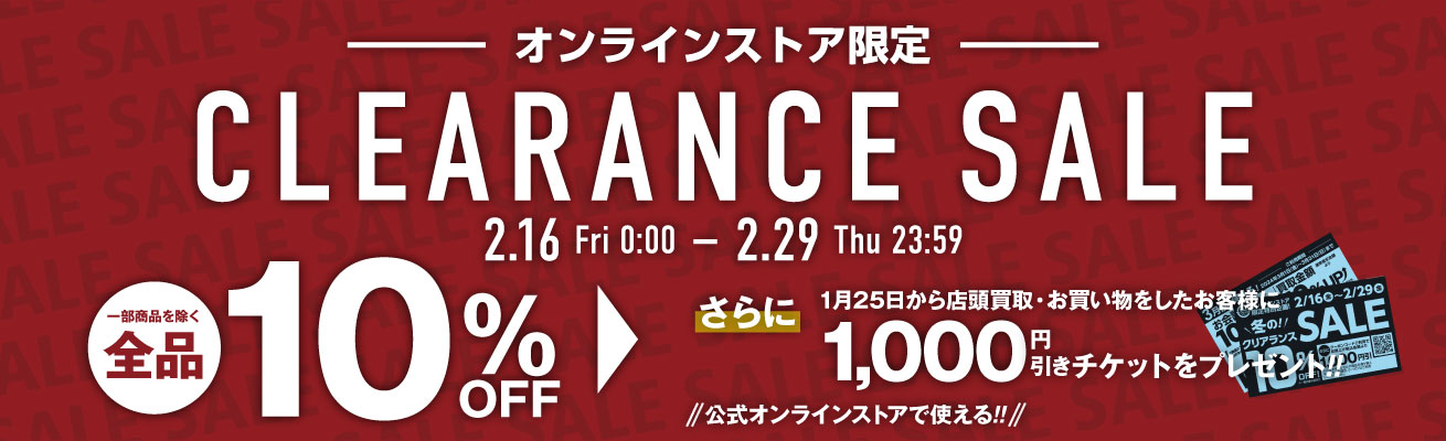 2月16日(金)~29日(木)は【オンラインサイト限定】CLEARANCESALEです!!