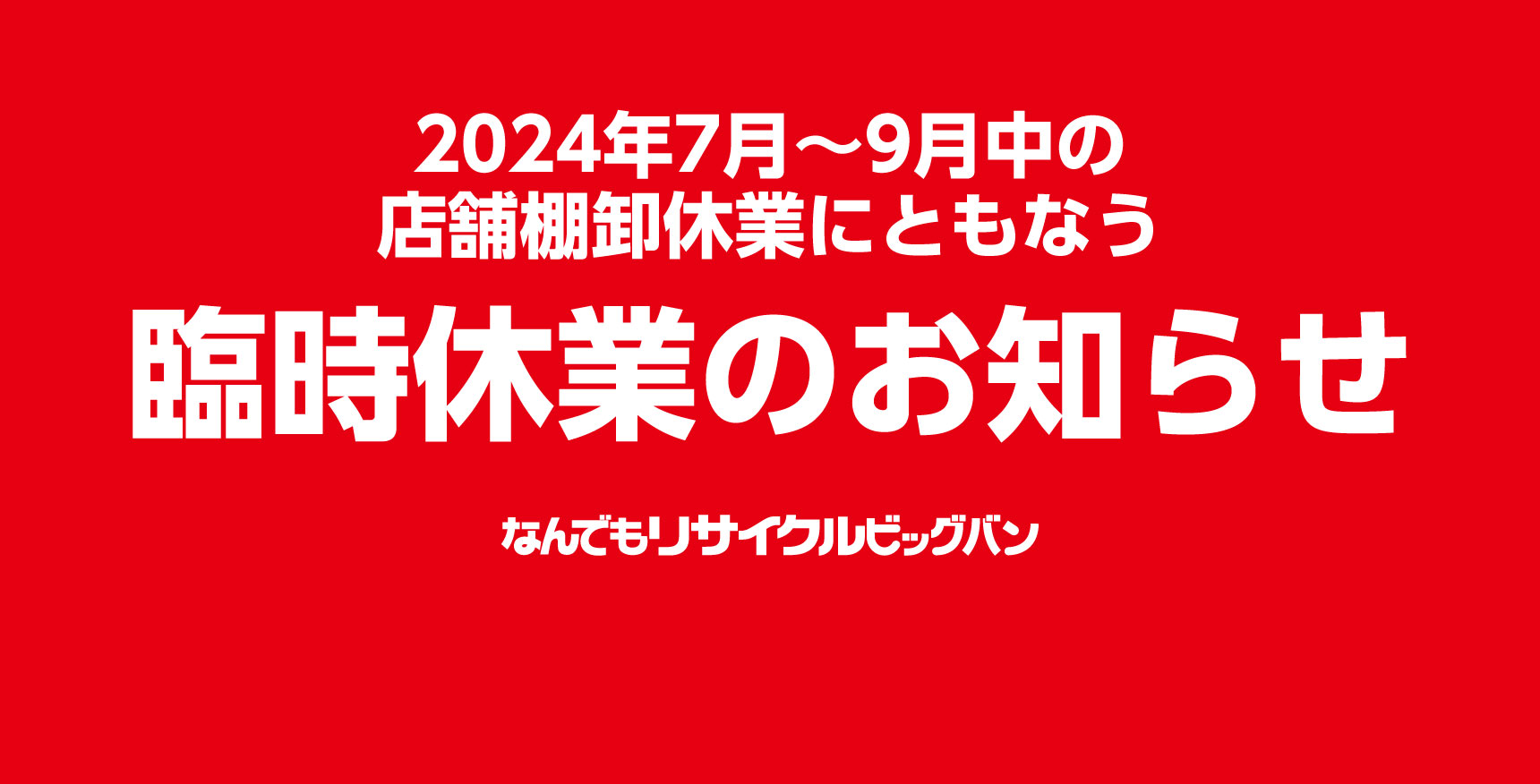 ・ 8月 6日(火) なんでもリサイクルビッグバン帯広柏林台店 休業