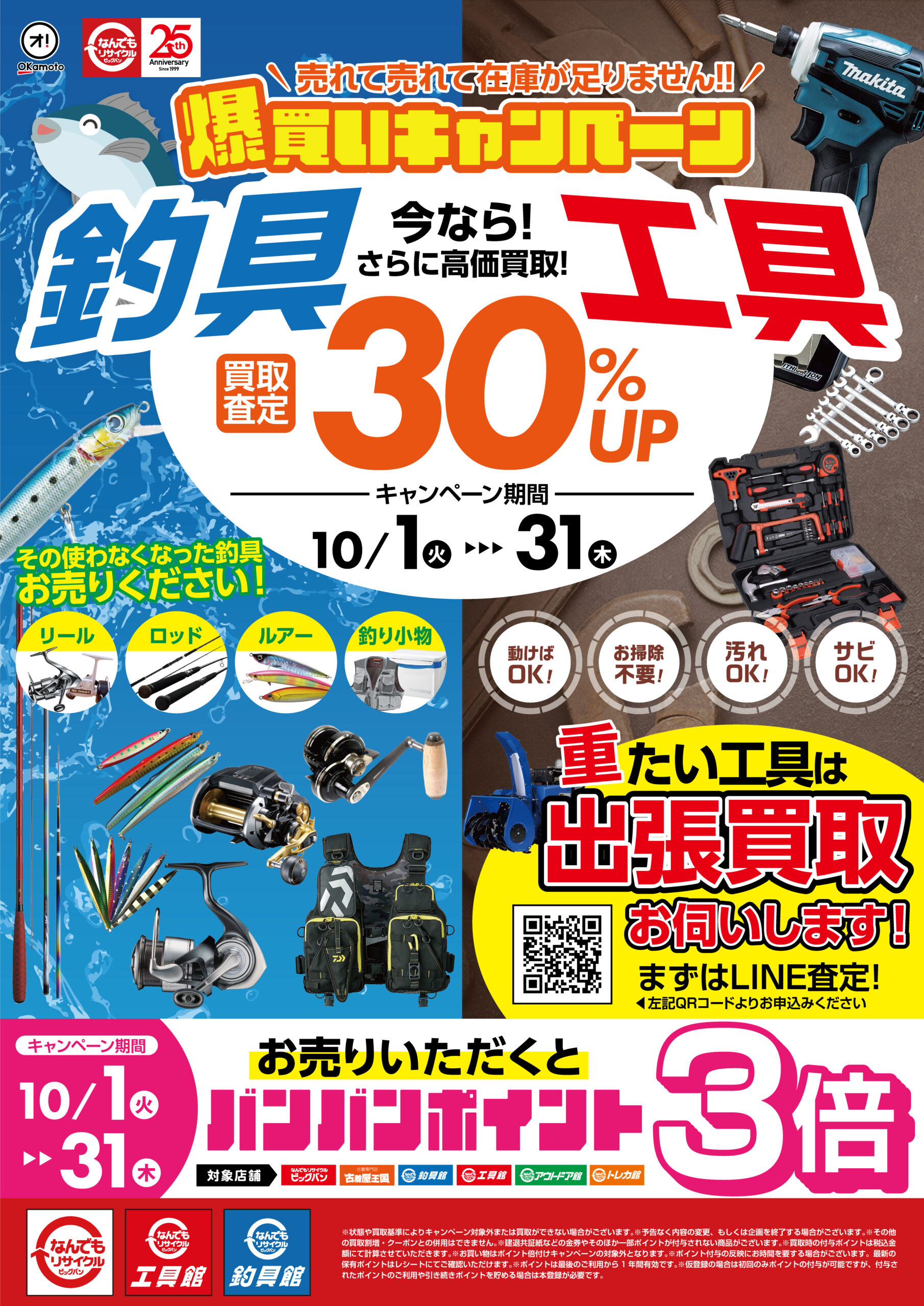 中古工具と中古釣具の買取金額が!なんと!!