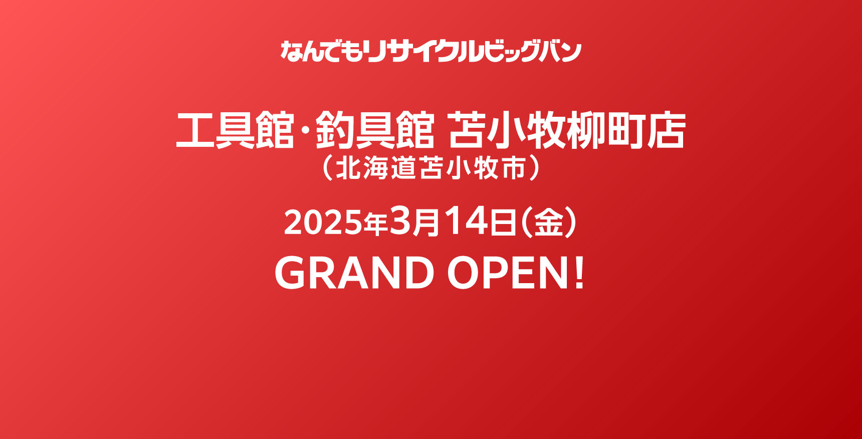 なんでもリサイクルビッグバン工具館・釣具館 苫小牧柳町店が2025年3月14日(金) GRAND OPEN!