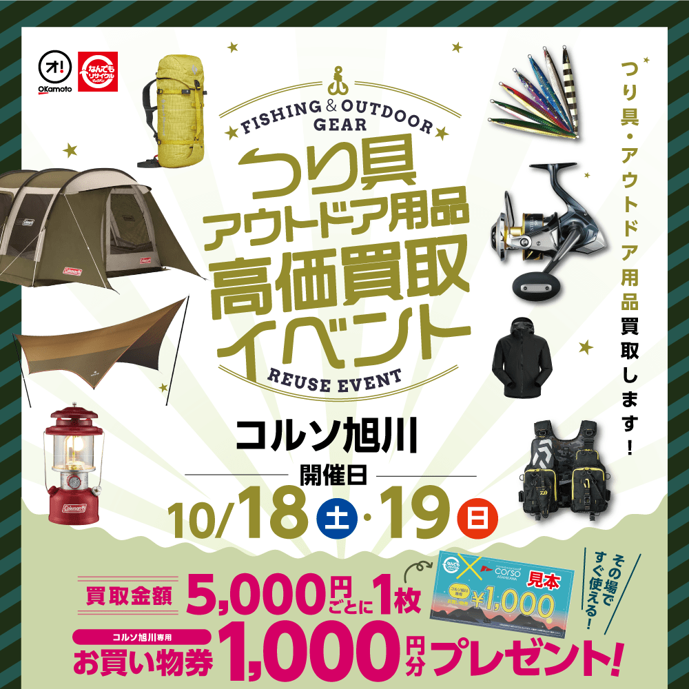 ビッグバン釣具館 旭川末広店 | 旭川市末広東1条6丁目1-3 | 0166-74-8250 | 10:00~20:00 (店頭買取は10:00~19:00) |