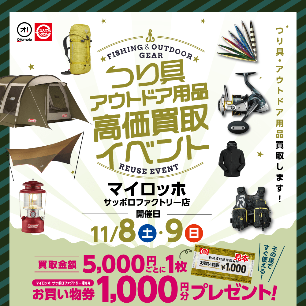 ビッグバン釣具館 札幌手稲店 | 札幌市手稲区稲穂2条2丁目2-1 | 011-676-6300 | 10:00~20:00 (店頭買取は10:00~19:00) |