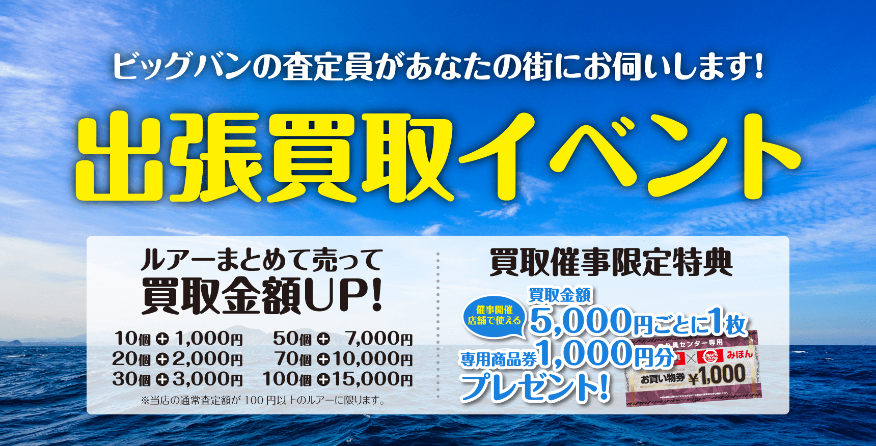 ビッグバン釣具館 札幌清田店 | 札幌市清田区真栄1条2丁目13-1 | 011-375-9680 | 10:00~20:00 (店頭買取は10:00~19:00) |