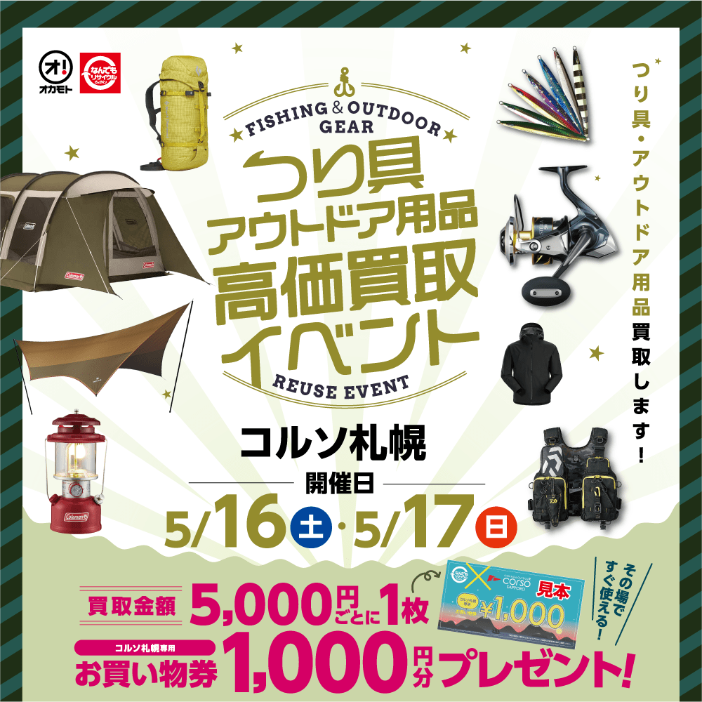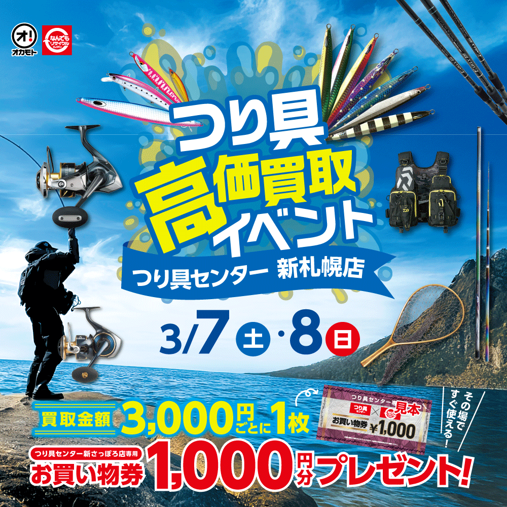 | ビッグバン釣具館 札幌北32条店 | 札幌市北区北32条西10丁目1-5 | 011-708-5022 | 10:00~20:00 (店頭買取は10:00~19:00) |