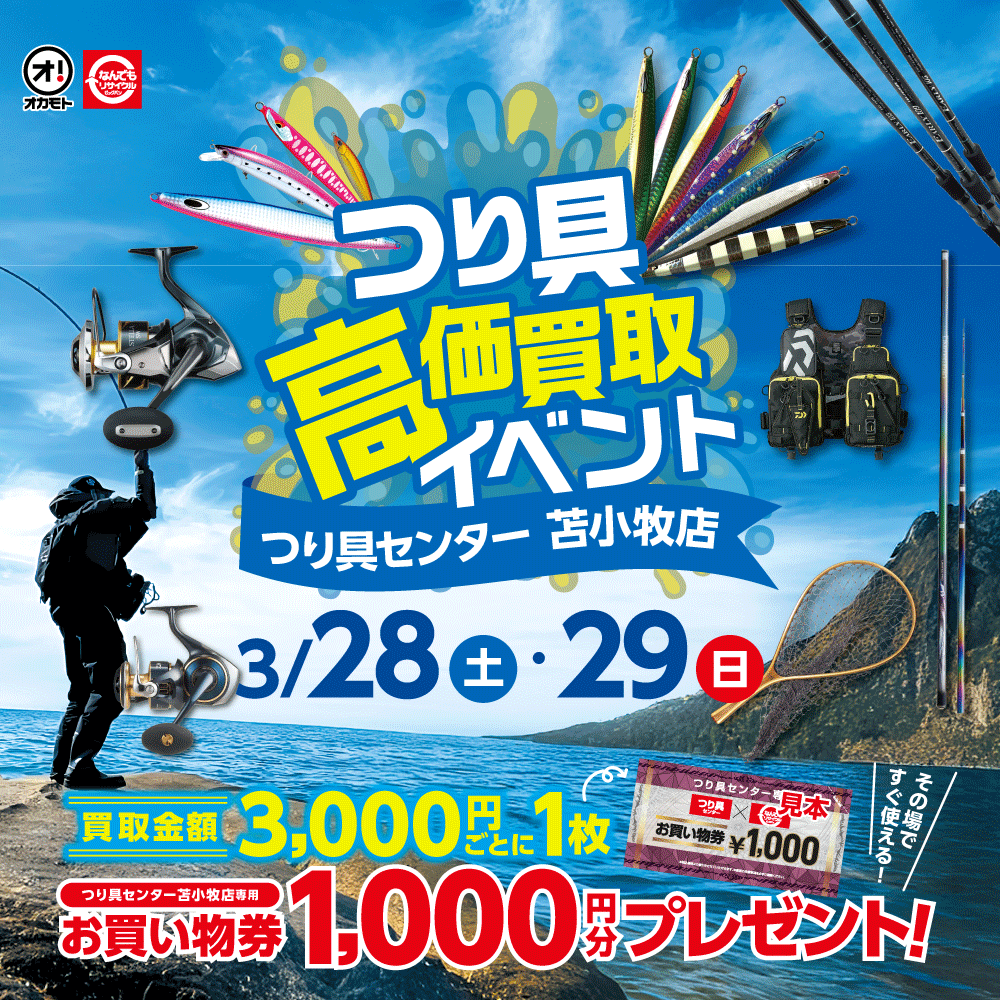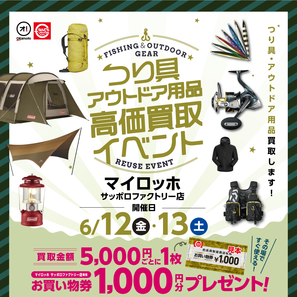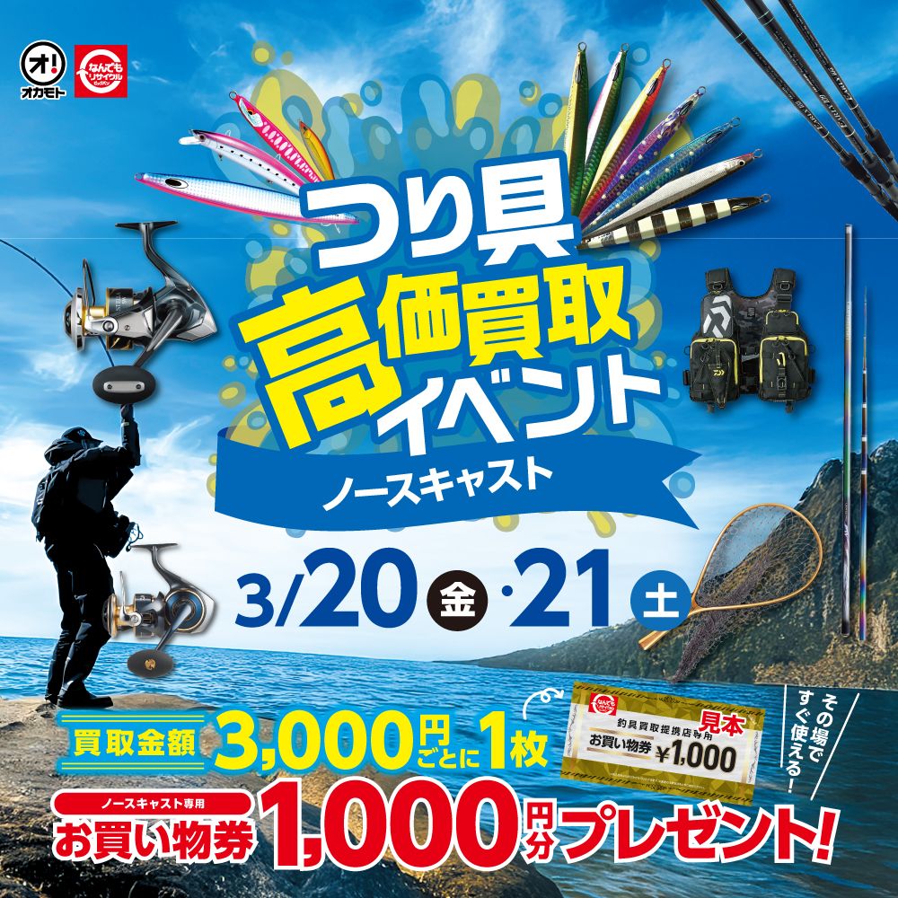 | ビッグバン釣具館 札幌清田店 | 札幌市清田区真栄1条2丁目13-1 | 011-375-9680 | 10:00~20:00 (店頭買取は10:00~19:00) |