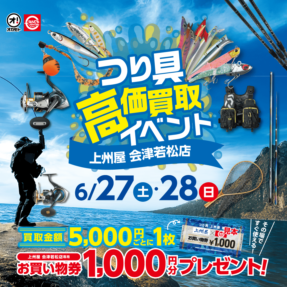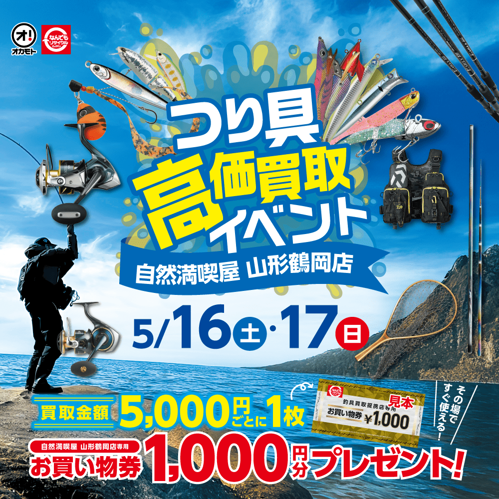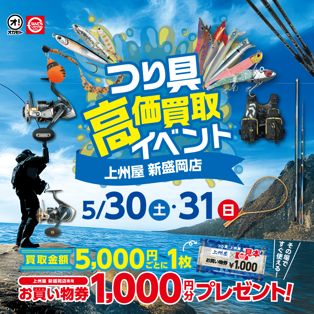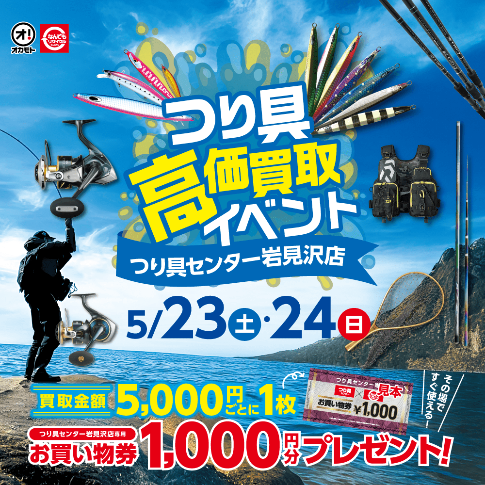 | ビッグバン釣具館 一関店 | 一関市山目泥田34-4 | 0191-34-5410 | 10:00~20:00 (店頭買取は10:00~19:00) |