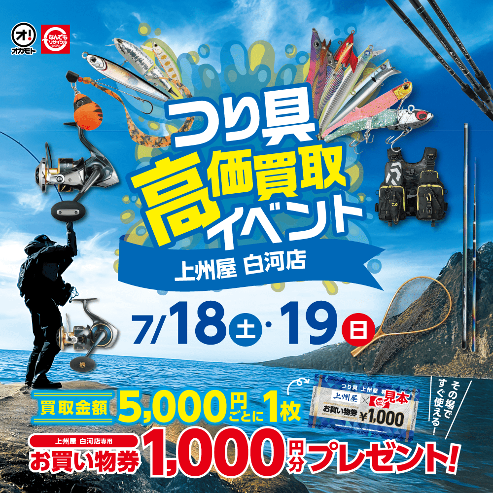 | ビッグバン釣具館 札幌白石店 | 札幌市白石区本通6丁目北6-23(ビッグバン札幌白石店内) | 011-846-3196 | 10:00~20:00 (店頭買取は10:00~19:00) |