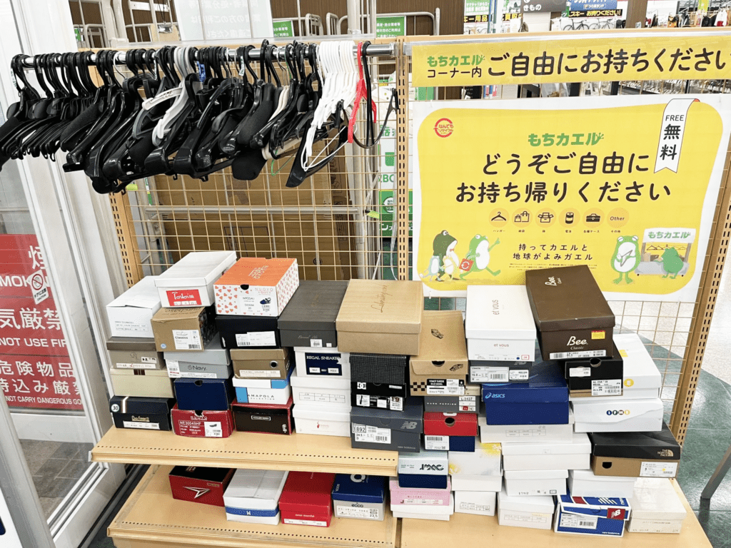 「もちカエル」では、ハンガー・紙袋などの資源を無料で提供をしています。